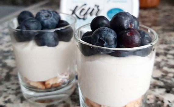 Vasitos de crema de Kéfir con arándanos para la video-comida en familia para celebrar el #diadelpadre. Mi familia lo celebra todo comiendo juntos, y si no puede ser en persona, pues se hace como sea. Te quiero mucho, papá.