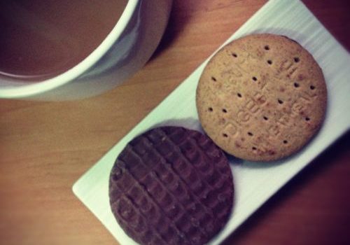 Pocas cosas me gustan más a media tarde que una taza enorme de earl grey con un poco de leche y un par de galletas. Después de las galletas de miel y cardamomo, éstas tipo digestive con chocolate quizás sean mis favoritas para el té. Un tecito siempre sienta bien. Eso.