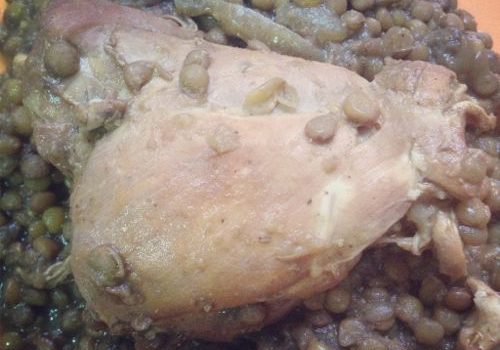 Hago muchas veces pollo con lentejas o lentejas con pollo (no es lo mismo). No lo puedo evitar, no es fotogénica, pero me encanta la comida marrón (hígado, riñones, lentejas…).