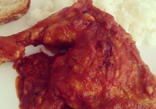 Ayer freí un poco de tomate natural triturado para comer arroz con tomate frito y me sobró tomate, hoy lo he usado para este pollo. Un cuarto trasero de pollo pequeño, una cebolla pequeña, dos dientes de ajo, un vaso de vino blanco, los restos de tomate frito de ayer, un […]