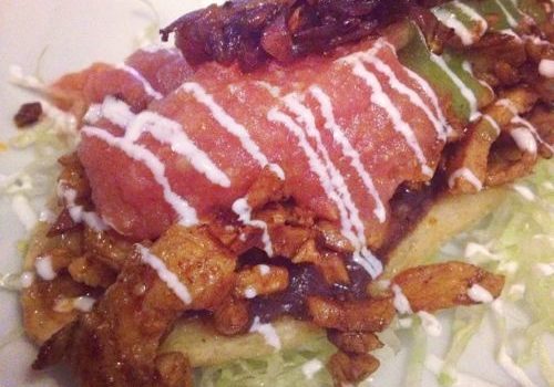 Me encanta el huarache y me encantan los tacos al pastor (especialmente en Los Jarales), así que huarache al pastor sonaba bien. Estaba muy rico, pero la próxima vez quiero probarlos por separado. Huarache al pastor: base de maíz, carne al pastor, lechuga, salsa roja y verde.