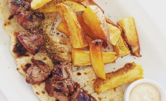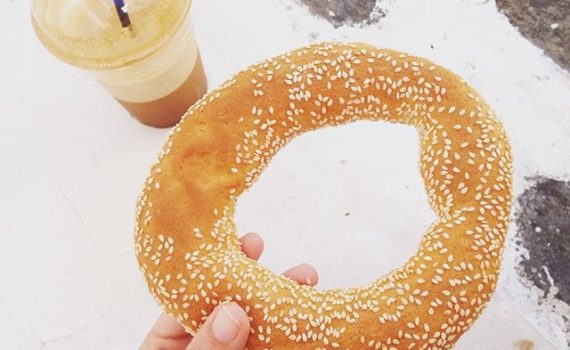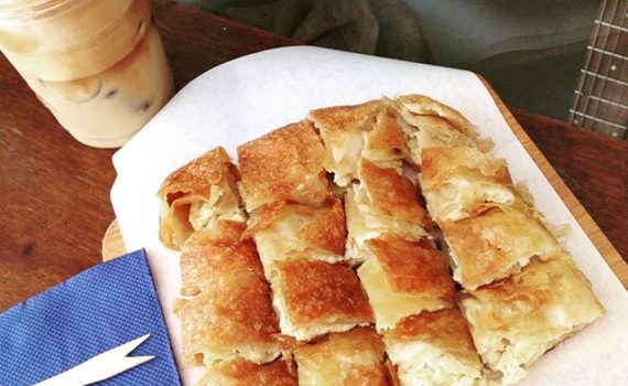 Ena frappé me gala ligo glykó kai mía bougatsa tirí