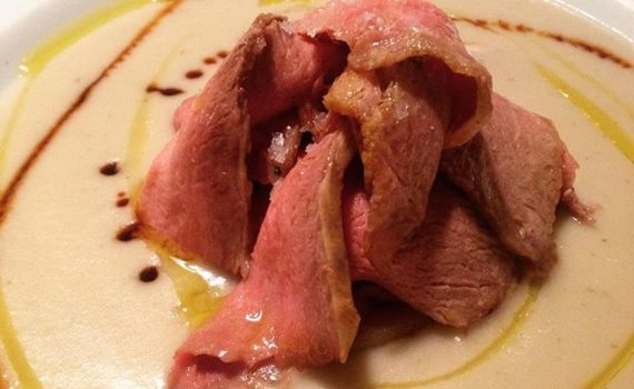Crema de tupinambo con presa ibérica estofada y membrillo caramelizado …