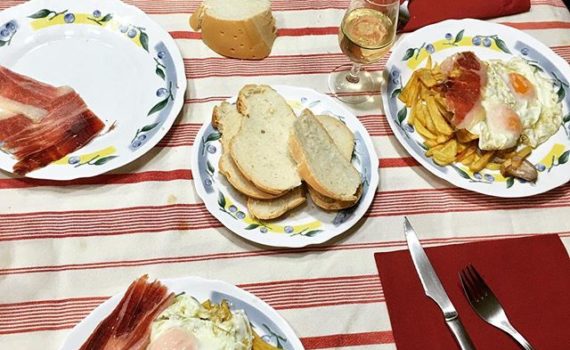 Papas fritas con huevo y jamón