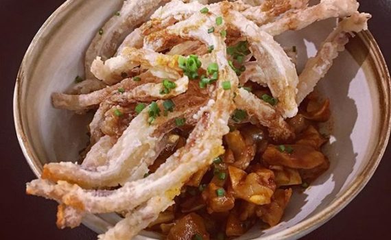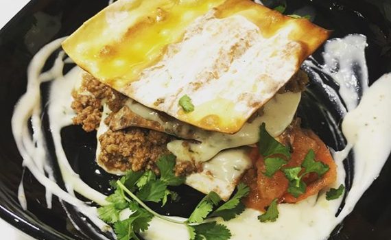 Lasaña crujiente de wonton, boloñesa koreana y bechamel de hierbas …