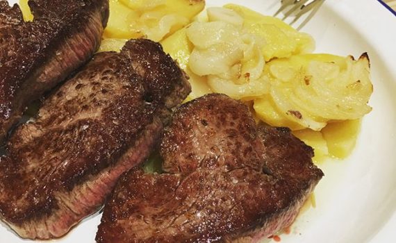 Solomillo de ternera, calamar con huevo y manzanilla, y entremeses …