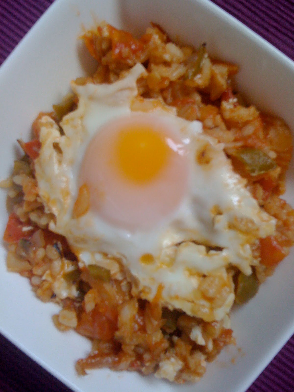 Tiene muy buena pinta!! El arroz con huevo es un infalible!! Y si encima le añades cosas ricas… ñam ñam!