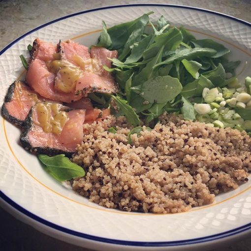 Publicada 30/09/2016 Ensalada de quinoa con salmón y rúcula Compartir:Haz clic para compartir en Facebook (Se abre en una ventana nueva)Haz clic para compartir en Twitter (Se abre en una ventana nueva)Haz clic para compartir en Pinterest (Se abre en una ventana nueva)Haz clic para compartir en WhatsApp (Se abre en una ventana nueva)