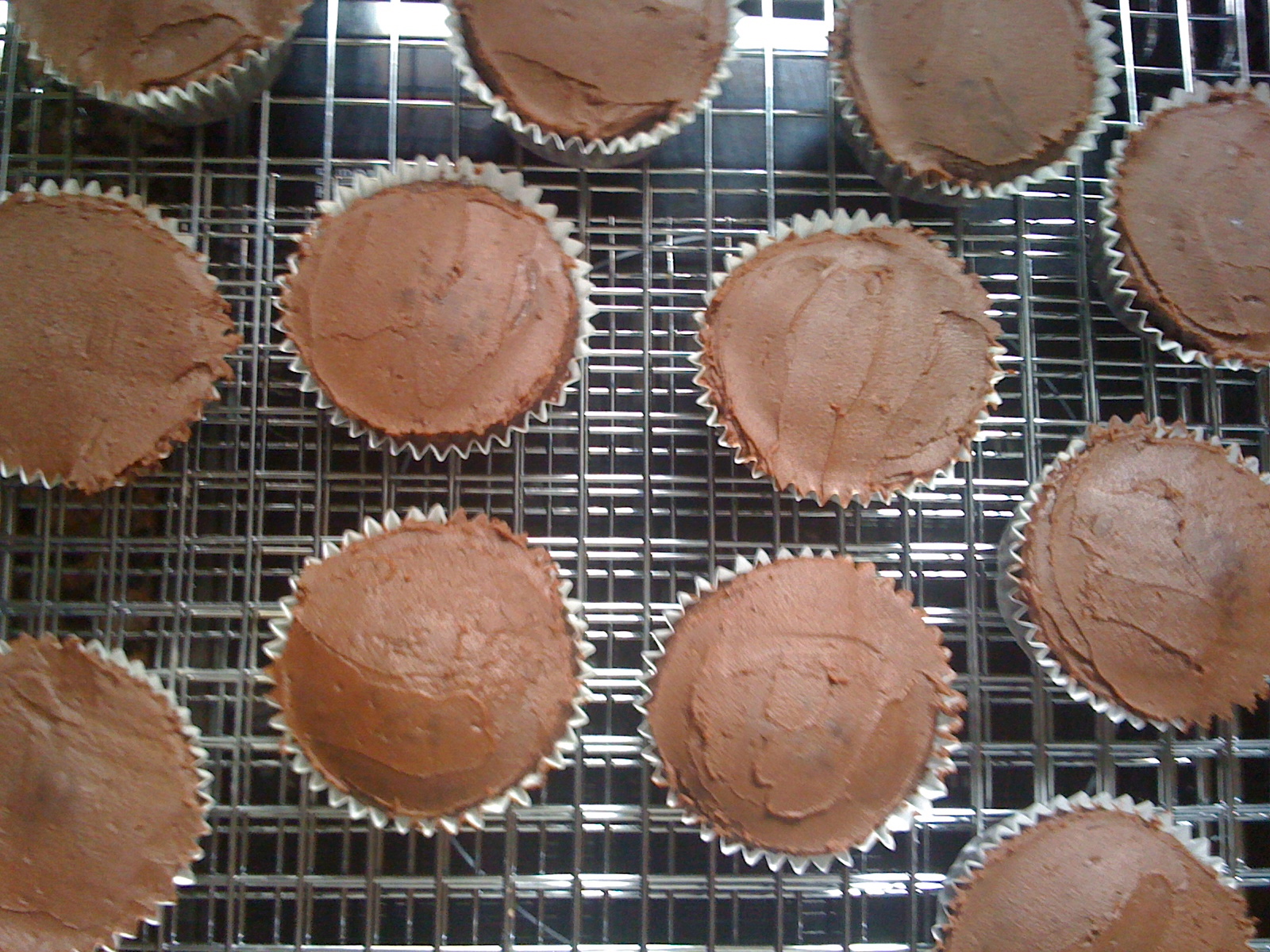 Como pegamento para estos cupcakes usé ganache de chocolate.