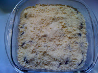Cubrir las ciruelas con el crumble resistiendo la tentación de aplastarlo. El crumble debe quedar suelto y ligeramente irregular sobre las ciruelas para permitir que un poco del jugo de la fruta salga sobre el crumble.