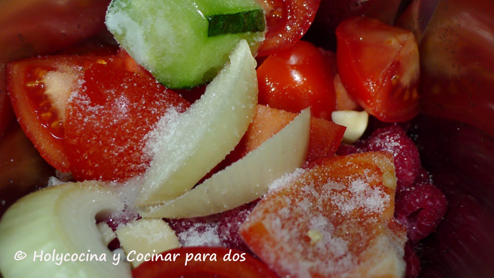 Pero un día aprovechamos para comer en casa, así que cocinamos juntas! Entre las cosas que hicimos, está este gazpacho de frambuesas, una variante del gazpacho de fresas, simplemente sustituyendo las fresas por frambuesas. Animaros a probarlo porque está delicioso.
