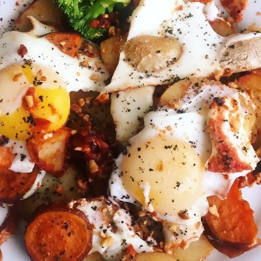 Aprendiendo a freir huevos. Las pelotitas (de zanahoria y puerro) me enseñó a hacerlas un amigo.