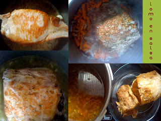 Si quieres hacerlo con el lomo troceado 20min serán suficientes. Puede utilizarse otro tipo de carne de cerdo como por ejemplo solomillo, o costillas. También puede rellenarse la pieza de carne de lo que se quiera (aunque en eso el especialista es mi hermano). Se le pueden añadir todas las verduras que queramos, aunque para mi gusto simplemente con cebolla y zanahoria se obtiene el mejor resultado (un pelín dulzón, eso sí). La salsa puede pasarse por un colador para hacerla más fina, y luego puede volver a ponerse al fuego para que reduzca si se desea más espesa, aunque a mí no me gusta hacer ninguna de estas dos cosas.