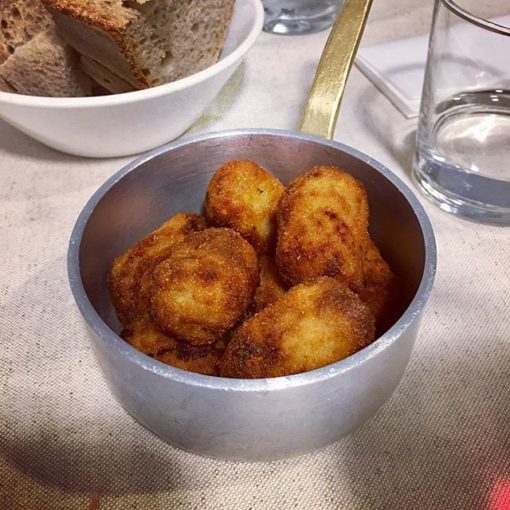 Sopa de cebolla: aceite de oliva virgen extra, cebolla, ajo, papada salada, vino de solera, agua, pan duro, queso emmental.