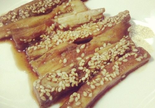 Me gusta mucho la melitzanosalata, me gusta con berenjenas asadas en una llama viva o al horno, triturada o solo mezclada, con ajo o sin él, con aceitunas kalamatas o sin ellas, con alcaparras y cebollas nuevas o no, y preferiblemente siempre con feta. Suelo hacer las berenjenas al horno […]