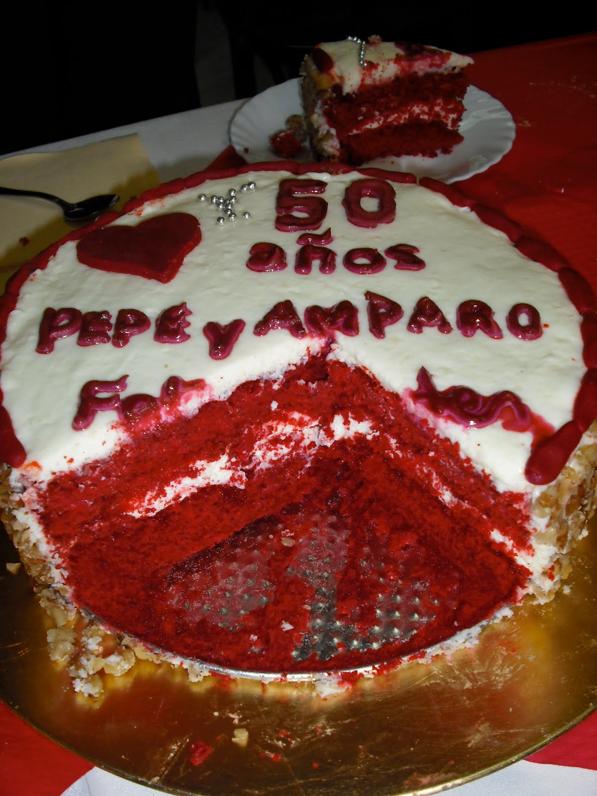 Hace ya más o menos un año y medio que descubrí el foro de cocinandoconelalma cuando buscaba desesperadamente ayuda para una tarea que me había autoimpuesto: hacer la tarta para las Bodas de Oro de mis abuelos. Supongo que para la muchos hacer una tarta para una celebración familiar no es nada del otro mundo, pero yo en mi vida había hecho absolutamente nada, ni el más simple de los bizcochos, así que fue todo un reto! En el foro encontré toda la ayuda que necesitaba y tras dar mucho la lata y hacer algunas pruebas este fue el resultado.